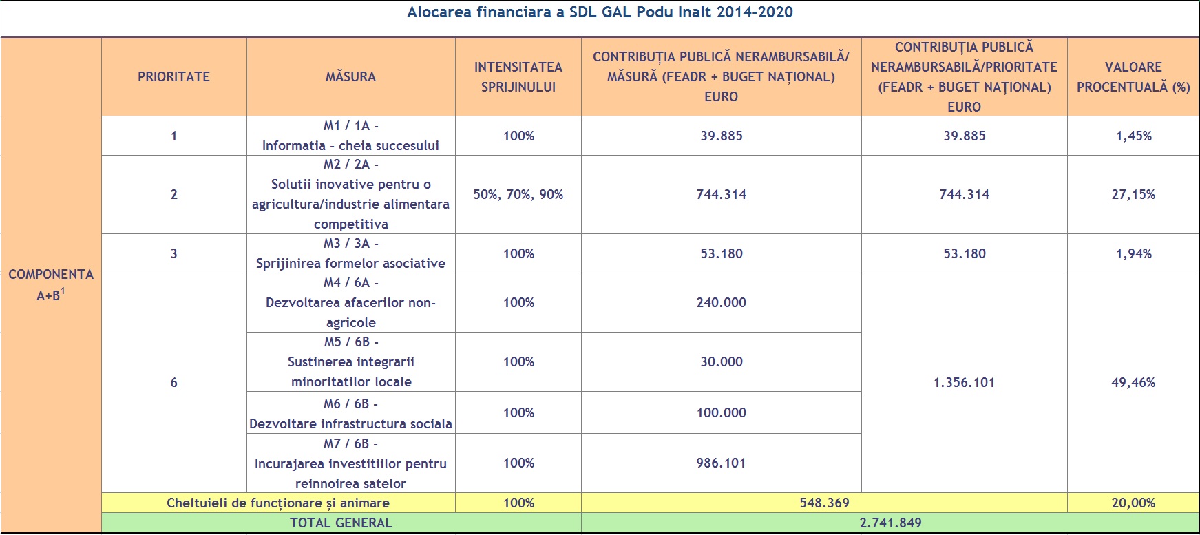 Alocarea financiara a SDL GAL Podu Inalt 2014-2020